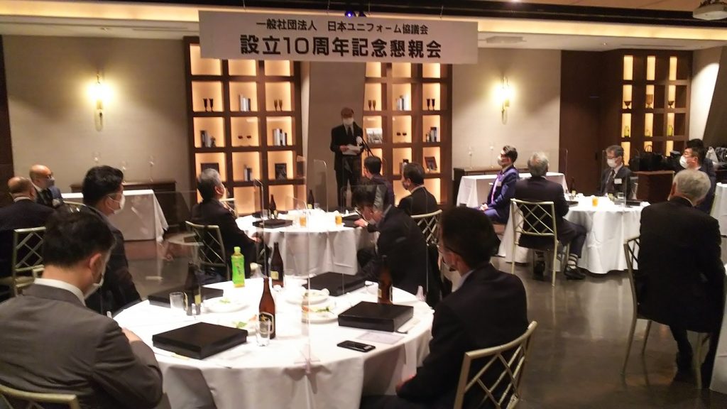 伊藤清一理事長から、日頃のご協力に対する謝辞とともに「〝ユニフォームの持つ力〟を、業界を構成する素材メーカー、商社、副資材会社、アパレル会社、販売会社などすべての企業に参画していただいて知恵を出し合い考えること、また、各企業の社員の方にも〝ユニフォームの持つ力〟を再認識していただき、業界の一員であることに誇りを持っていただくことで業界全体の地位を向上させる。その役割を果たすことに当協議会の存在価値がある」との挨拶があり、その後、日清紡テキスタイル㈱岡山芳久執行役員シャツ・テキスタイル事業統括から「当協議会は、ユニフォームソムリエ検定はじめ様々な事業によってユニフォーム業界、並びに会員各企業の発展に寄与されており、今後もより一層期待したい」との祝辞をいただきました。